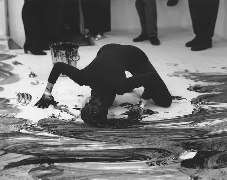 In Loving Care, Antoni mopped the floor of the gallery with her hair soaked in Loving Care hair dye “Natural Black.” The artist’s actions conjured up the expressive marks of Abstract Expressionist painting, linking them to the chore of mopping. As she claimed the space, the audience was slowly backed out of the gallery.